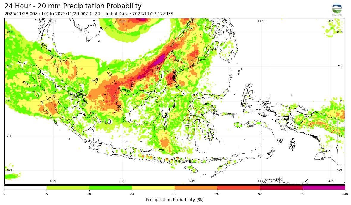 BMKG | KlikGenZ.com — Badan Meteorologi, Klimatologi, dan Geofisika (BMKG) mengingatkan masyarakat untuk tetap waspada terhadap potensi cuaca ekstrem di sejumlah wilayah Indonesia dalam periode 28 November – 4 Desember 2025. Meski Siklon Tropis Senyar yang sebelumnya terbentuk di Selat Malaka kini telah melemah, dampak peningkatan curah hujan diperkirakan masih akan berlangsung.
