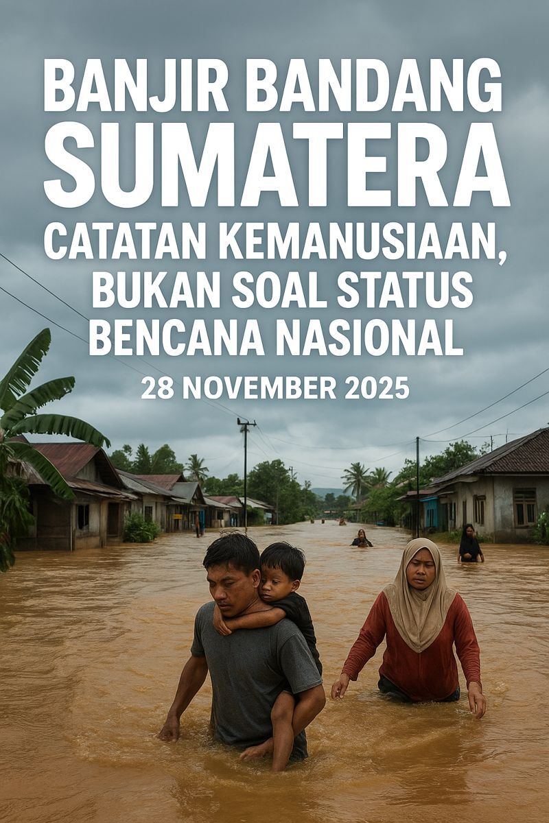 Namun, di sisi lain, kita juga menyaksikan dan mendengar hiruk-pikuk narasi yang justru mengaburkan esensi kemanusiaan. Perdebatan di ruang publik, terutama soal desakan menjadikan bencana Sumatera sebagai bencana nasional, kerap mendominasi tajuk media massa dan media elektronik. Bahkan ada yang berteriak lantang, seolah-olah status adalah segalanya.