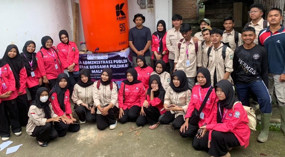 Selain itu, HIMA AP juga membawa satu unit toren air minum yang langsung dipasang di lingkungan surau setempat. Toren tersebut ditempatkan agar mudah diakses dan digunakan bersama oleh warga sekitar. Pemilihan lokasi surau dimaksudkan agar air dapat dimanfaatkan untuk kebutuhan harian sekaligus untuk berwudhu. Dengan demikian, fungsi sosial dan kebutuhan ibadah warga dapat terpenuhi secara bersamaan. Mereka juga menyalurkan 100 jerigen air minum berkapasitas lima liter kepada warga terdampak. Distribusi ini dilakukan secara langsung untuk memastikan bantuan tepat sasaran dan segera dimanfaatkan. Air bersih dipandang sebagai kebutuhan paling mendesak karena jaringan distribusi warga belum sepenuhnya pulih. Langkah ini menunjukkan pemahaman mahasiswa terhadap prioritas pelayanan dasar dalam situasi darurat.