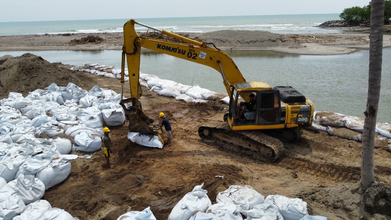 Dua unit alat berat dikerahkan untuk mempercepat proses pemasangan geobag di titik-titik kritis. Upaya ini diprioritaskan pada bantaran sungai yang rawan tergerus arus, terutama saat debit air meningkat pada musim hujan.