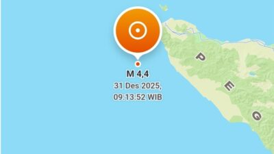 ACEH BESAR | KLIKGENZ – Gempa bumi tektonik berkekuatan magnitudo (M) 4,4 mengguncang wilayah Kabupaten Aceh…