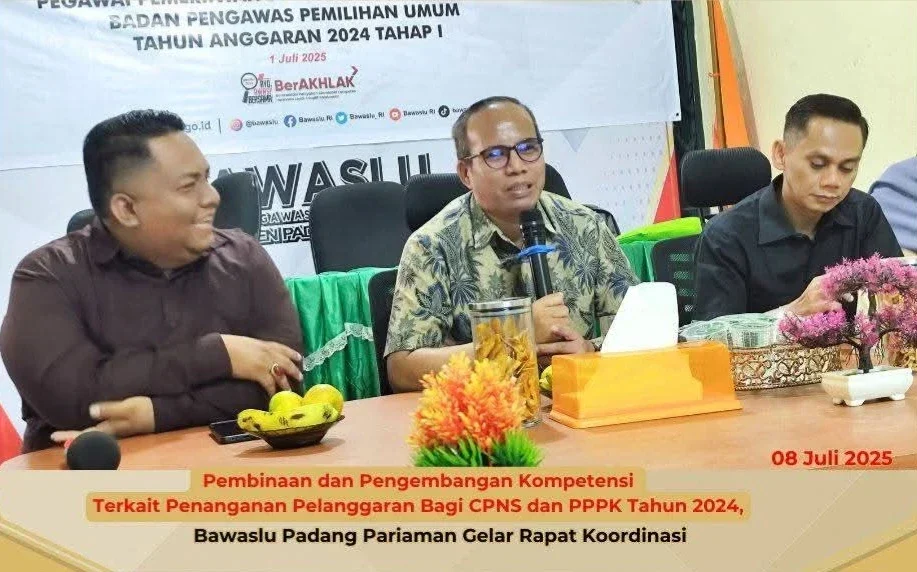 PADANG PARIAMAN, KlikGenZ – Badan Pengawas Pemilu (Bawaslu) Kabupaten Padang Pariaman menyelenggarakan rapat koordinasi dalam rangka pembinaan serta pengembangan kompetensi bagi CPNS dan PPPK formasi tahun 2024. Kegiatan ini berlangsung di Aula Kantor Bawaslu Padang Pariaman, Selasa (8/7/2025).
