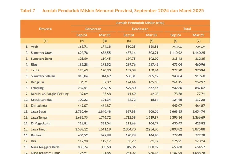 Namun, jika dilihat per provinsi, wilayah dengan tingkat kemiskinan tertinggi berdasarkan persentase masih didominasi oleh provinsi di Papua dan NTT. Berikut daftar 10 provinsi dengan persentase penduduk miskin tertinggi: