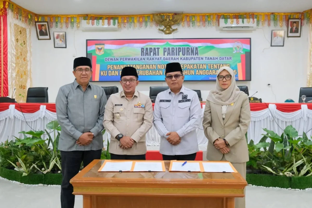 TANAH DATAR | KlikGenZ – Pemerintah Kabupaten dan DPRD Tanah Datar resmi “menyetujui ulang” arah belanja daerah untuk tahun 2025. Kesepakatan ini dituangkan dalam penandatanganan Perubahan Kebijakan Umum Anggaran (KUA) dan Perubahan Prioritas Plafon Anggaran Sementara (PPAS), Kamis (14/8/2025) di ruang rapat utama DPRD.