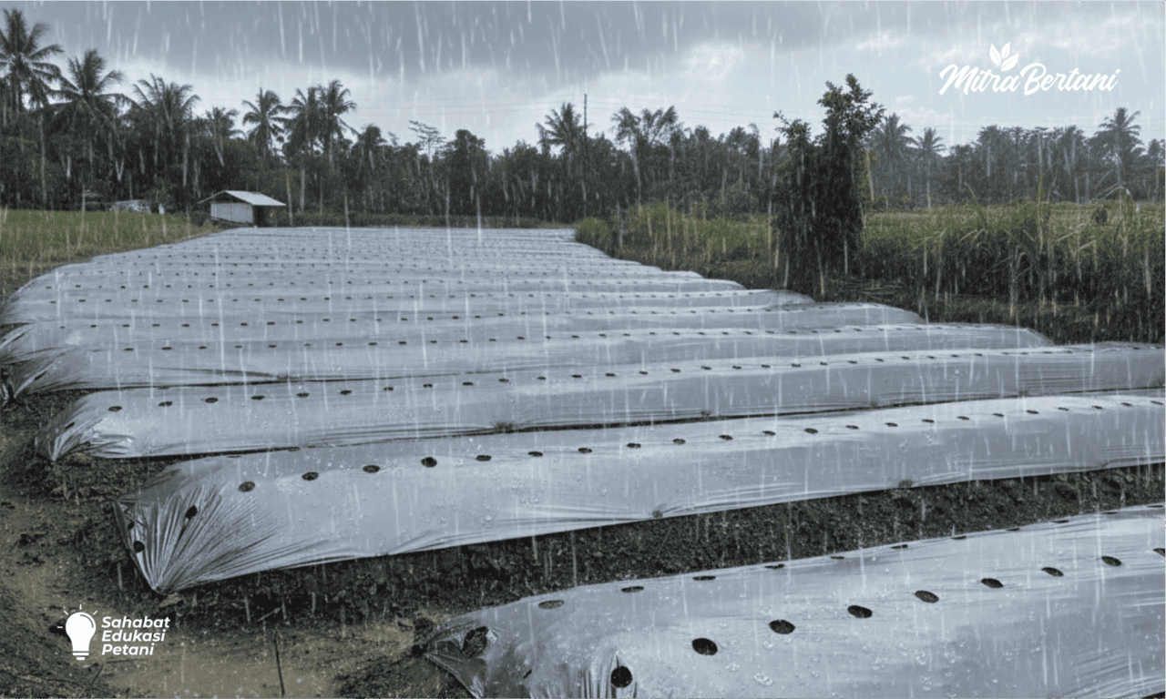 Kesalahan yang sering terjadi saat budidaya cabai di musim penghujan adalah membuat lubang pada mulsa terlalu banyak atau terlalu besar. Padahal, fungsi utama mulsa plastik adalah melindungi tanah dari percikan air hujan, menjaga kelembapan, dan menekan pertumbuhan gulma. Jika lubang yang dibuat berlebihan, air hujan akan mudah masuk dan menggenang di sekitar perakaran, sehingga tanah menjadi becek dan rentan ditumbuhi gulma. Kondisi ini dapat memperburuk kelembapan mikro di sekitar tanaman dan memicu penyakit jamur maupun bakteri. Oleh karena itu, lubang mulsa sebaiknya dibuat secukupnya, hanya sesuai kebutuhan tanaman, agar fungsi perlindungan tetap maksimal.