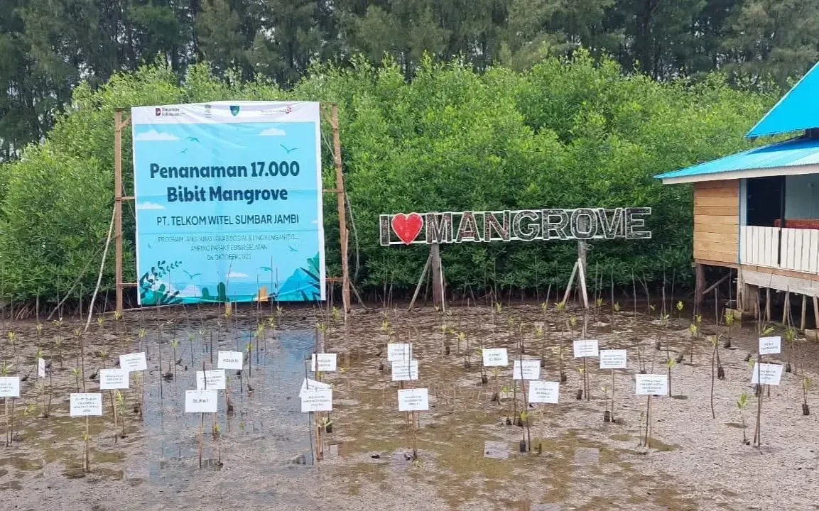 Melalui kegiatan penanaman mangrove di kawasan Desa Wisata Amping Parak, Kecamatan Sutera, Kabupaten Pesisir Selatan, Telkom ikut berperan aktif dalam menjaga ekosistem pantai sekaligus mendorong pengembangan ekowisata berbasis lingkungan dan digitalisasi nagari.