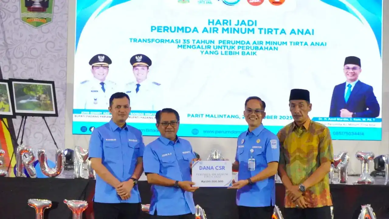 KLIKGENZ.Com— Bupati Padang Pariaman, John Kenedy Azis, menyampaikan ucapan selamat sekaligus harapan besar kepada Perusahaan Umum Daerah (Perumda) Air Minum Tirta Anai yang memperingati hari jadinya ke-35 tahun. Peringatan ini digelar di Hall IKK Parit Malintang pada Sabtu (25/10/2025).