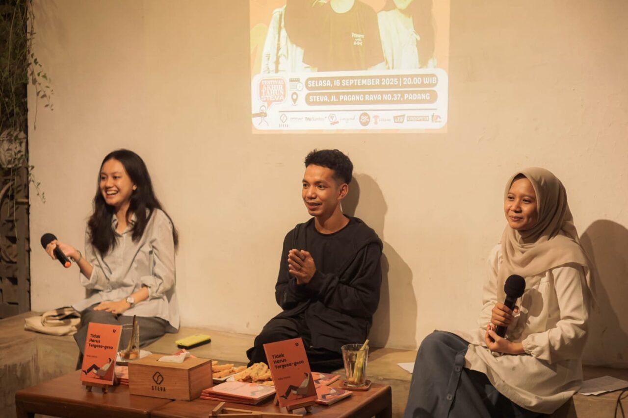 Padang | KlikGenZ — Peluncuran buku Tidak Harus Tergesa-gesa karya Rizky Utama digelar di Pustaka Steva, Kota Padang, Sumatera Barat, pada Selasa, 16 Desember 2025. Kegiatan ini mendapat apresiasi dan dukungan positif dari berbagai kalangan, mulai dari penulis, akademisi, pustakawan, hingga komunitas literasi.