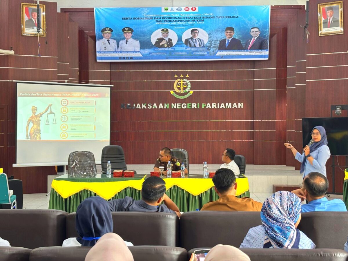 Perusahaan Umum Daerah (Perumda) Air Minum Tirta Anai Kabupaten Padang Pariaman resmi menjalin kerja sama strategis dengan Kejaksaan Negeri (Kejari) Pariaman melalui penandatanganan Nota Kesepahaman (MoU) terkait sosialisasi, koordinasi strategis, serta pendampingan hukum di bidang Perdata dan Tata Usaha Negara (Datun).