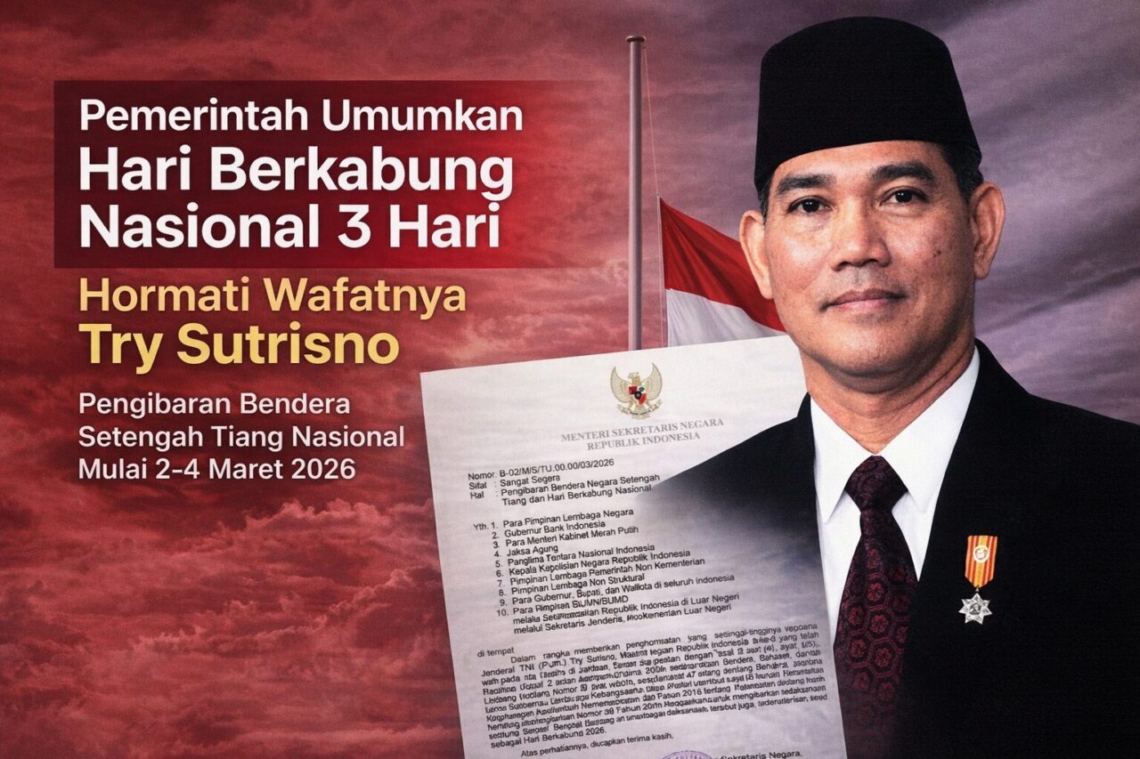 JAKARTA | KLIKGENZ.COM – Pemerintah Republik Indonesia menetapkan Hari Berkabung Nasional selama tiga hari, terhitung mulai 2 hingga 4 Maret 2026, sebagai bentuk penghormatan terakhir atas wafatnya Wakil Presiden ke-6 RI, Try Sutrisno.